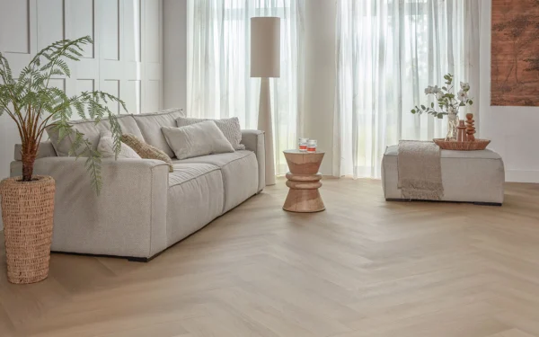 Ontdek de tijdloze elegantie van Walvisgraat PVC vloeren van Floer. Met hun verfijnde uitstraling en hoogwaardige afwerking geven deze vloeren elk interieur een luxe uitstraling, perfect afgestemd op moderne én klassieke woonstijlen.